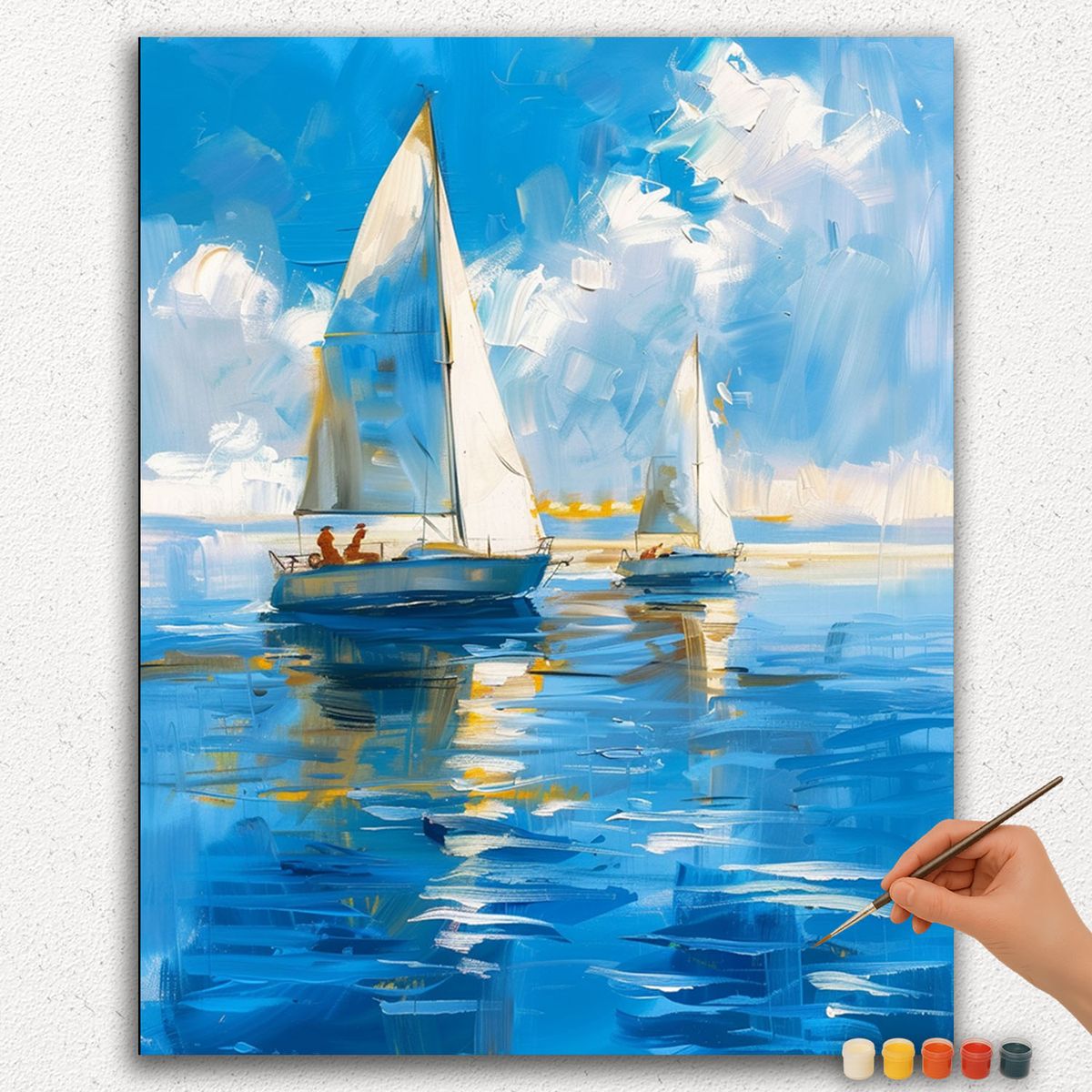 Apportez la sérénité de la vie océanique chez vous avec notre kit de peinture DIY “Deux Bateaux sur l’Eau Bleue”. Ce set de peinture par numéros représente un paysage marin paisible avec deux bateaux flottant sur des eaux bleues calmes.