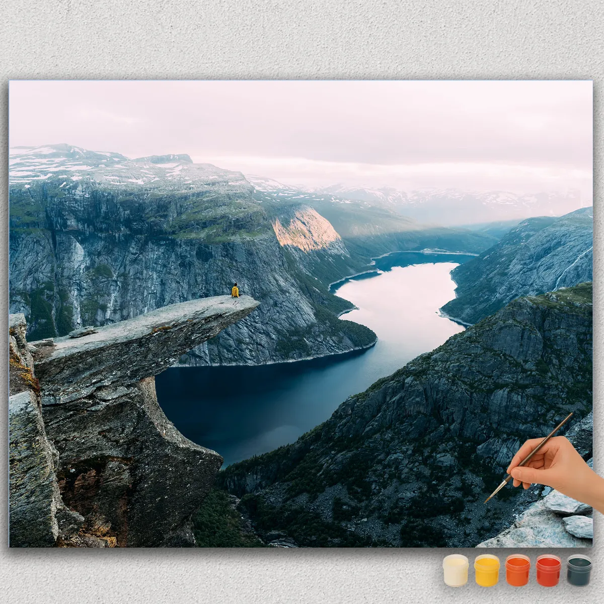 Transportez-vous dans un paysage montagneux paisible avec notre kit de peinture DIY Montagnes et Lac. Ce set de peinture par numéros présente un paysage époustouflant où des montagnes majestueuses rencontrent des eaux calmes.