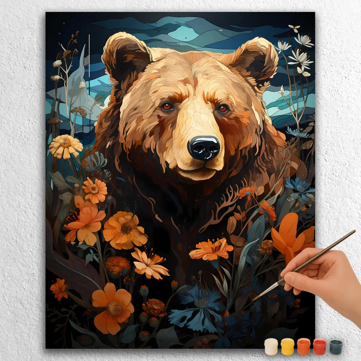 Apportez de la sérénité à votre espace avec « Ours et Fleurs », un charmant kit de peinture par numéros représentant un ours doux entouré de fleurs éclatantes. Cette scène adorable vous invite à explorer votre créativité et à vous détendre en lui donnant vie.