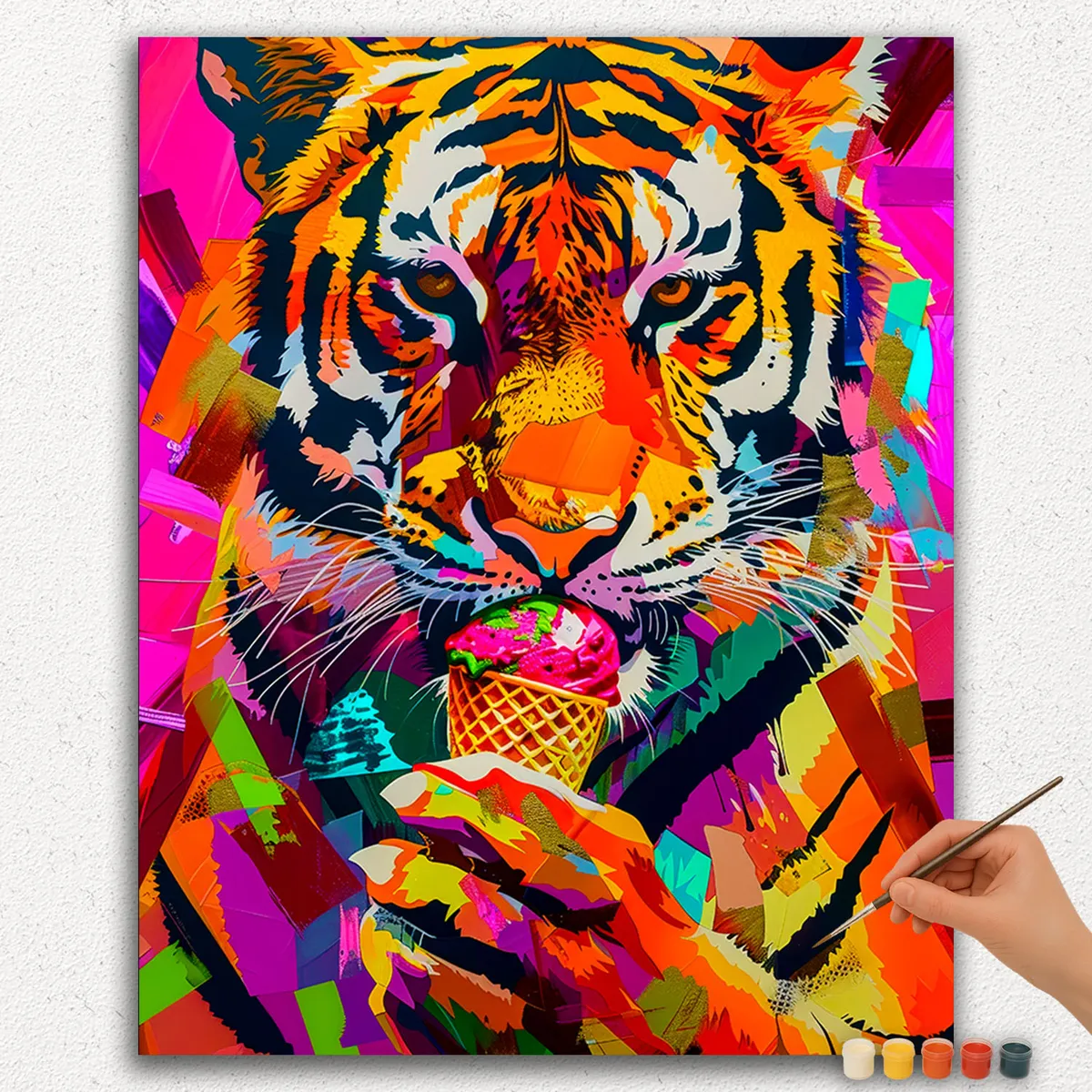 Donnez vie à une scène fantaisiste avec ce charmant kit de Peinture par Numéros mettant en scène un tigre savourant une crème glacée. Parfait pour les débutants comme pour les artistes expérimentés, ce kit vous permet de créer une œuvre d’art amusante et unique.